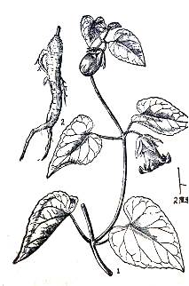 识别特征:多年生,缠绕性草本。根圆柱形、肉质,多单一不分枝。缠绕茎暗紫色。叶对生,卵形,端尖,边呈微波状缘,表面绿色,背面暗绿色。茎、叶均披柔毛。秋季开黄绿色花。结圆锥形蒴果。