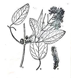 识别特征:常绿蔓生攀拔性灌木。以签旋绕于 其他植物。枝条灰褐色,有条纹。叶为三出复叶、对生、草艮卵形。开淡紫色小 花。