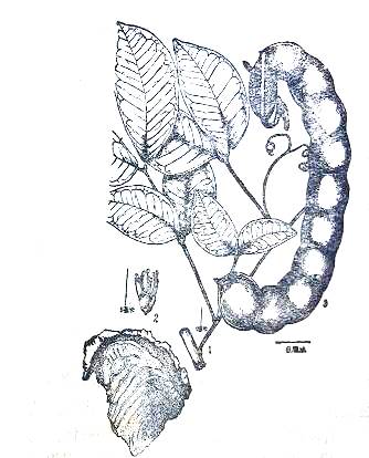 识别特征:木质攀援藤本。茎长可达30米,扁斜扭曲,断面赭褐色,有淡黄色斑纹。羽数复叶,有卷须,小叶二至四对,对生、革质,圆柜形。春夏开淡黄色小花。荚果 长带状,扁平、木质,有荚节,每节种子 一粒,扁圆形,黑褐色,坚硬有光。