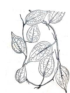 识别特征:攀援藤本。茎有节,宪净灰褐色。叶宜生,革质,椭圆罗。惫光举表面无毛,叶脉不明显背面?毛,脉五务,春季开白花。结果浆球派成串。