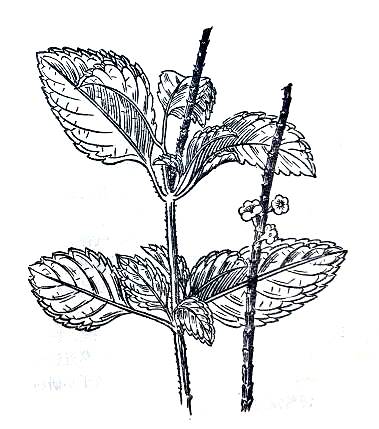 识别特征:多年生草本。茎直立,分枝横展。 单叶对生,边有锯齿、卵形。夏季开小蓝花,花冠管圆柱形,略弯曲形似“鞭” 。 采集加工。药用全草。全年可采,洗净晒干切段备用。