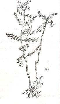 识别特征:多年生小灌木。直立,小分枝。茎圆?净,淡绿色。单叶对生,革质坚硬, 矩圆状披针形,边缘有深波状齿缺,齿尖锐利。开绿花。靖扁圆光亮的蒴果。