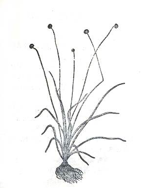 识别特征:一年生草本。根白色须状•叶丛生,近直立,线状披针形,并具透明横格。花茎较叶长,数条聚生,有五条纵 沟’花球状卵形,白色,披柔毛。