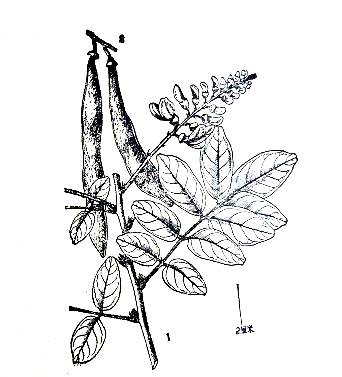 识别特征:常绿木质藤木•茎枝攀拔,幼嫩部 被黄褐色柔毛。叶互生,羽状复肝,小叶 五至九片,卵状矩圆形r两面网脉明显。 小托叶极小针剌状。五月开花,紫?色, 圆锥花序。荚果线形,草质无毛。