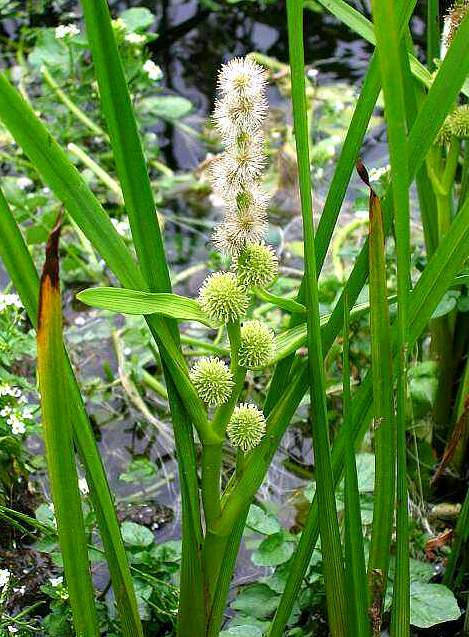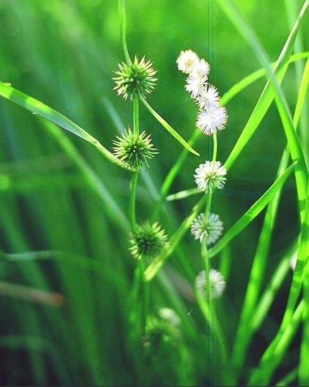 ②小黑三棱:多年生草本。根茎短,生多数块茎。茎高40~60厘米,叶片宽线形,长45~55厘米;宽6~8毫米。雄花序位于雌,花序之上,无柄,通常5~7个,具叶状苞片;雌花序3~6个;雄花花药线形,花丝线状;雌花子房倒卵形,花柱宿存,略呈钩状。果呈核果状;纺锤形,熟时黑褐色。