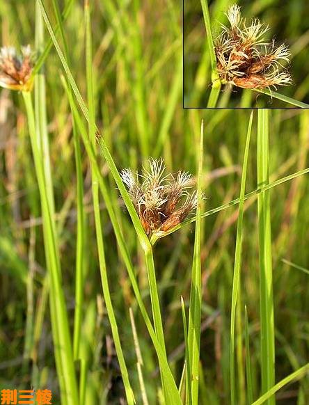 此外,尚有莎草科植物荆三棱的块茎,在东北及内蒙古、陕西、新疆、江苏等地亦作三棱使用,商品习称黑三棱(《开宝本草》记载的黑三棱即此),或称带皮三棱。荆三棱为多年生草本,高70~150厘米。根茎横走,先端具球状块茎。茎锐三棱形。叶扁平,线形,长20~30厘米,宽5~10毫米,基部呈鞘状抱茎。长侧枝聚伞花序有3~8辐射枝;每辐射枝有1~3(~4)小穗;小穗长圆形,长1~2厘米,宽6~8(~10)毫米;鳞片膜质,长约7毫米,外面被短柔毛,先端有芒,芒长2~3毫米;刚毛6;雄蕊3,雌蕊1,柱头3。小坚果三棱形。药材呈近圆球形或倒圆锥形,长约3~4厘米,直径约2~3厘米。表面黑褐色或红棕色,有皱纹,须根痕较少;去皮者外形与上述品种相似;质轻而坚,横切面平坦,黄色,有散在的维管束;气微,味淡。
