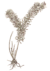 多年生草本,高35~50厘米。根茎短,有须状根。茎丛生,幼时密被白色绵毛。叶互生,线形,长2~2.5厘米,宽1.5~2毫米,先端尖锐,基部抱茎,全缘,上面绿色,疏被白色绵毛,下面白色,密被白色绵毛。
