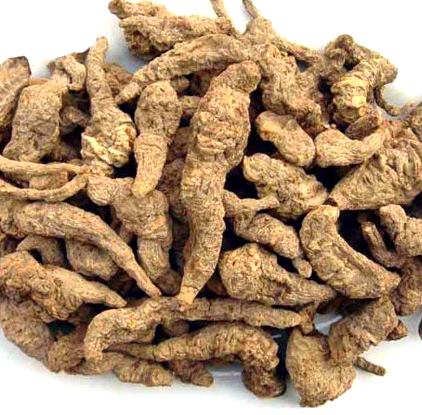 【药材】呈不规则的圆形或长圆形块状,长6~12厘米,直径3~6厘米。表面灰棕色或灰黑色,全体皱缩不平,具不规则的横曲纹。细小的多为长条状,稍扁而扭曲。质柔软,干后则坚实,体重。不易折断,断面子坦,紫黑色或乌黑色而光亮,显油润,具粘性。气微香,味微甜。以肥大、体重、断面乌黑油润者为佳。
