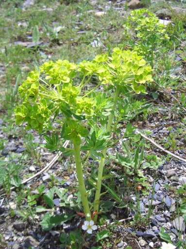 多年生宿根草本,高20-30厘米,全株均含白色乳汁。根 粗tfc,径达3厘米,外皮褐色。茎丛生,下部带红色,上部绿 色,分枝少。单叶互生;浅形,长0.5〜2厘米,宽3毫米左 右,由下至上逐渐增大,先端钝或锐尖,基部渐狭。聚伞花 序生于茎顶;花黄色,径约5亳米•蒴果圆球形,径约1厘 米,外面光滑,3裂。花期春 生于向阳山坡或松林下,分布云南等地。