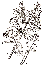 木质藤本,长2~4米。树皮黄褐色渐次变为白色,嫩时 有短柔毛,嫩茎的节有环纹•单叶对生;卵圆形至捕圆形, 长4〜8厘米,宽3.5〜4.8 厘米,先端钝或短尖,全 缘,基部浑圆或稍平截,上 面绿色,主脉上有短疏毛,下面带灰白色,密生白色 短柔毛;叶柄长2〜5奄 米,有短柔毛?花两性,近 无柄,成对腋生,约有6〜8朵合成头状花序或短的 聚伞花序,有短柔毛,芳 香;苞片叶状,长4〜8奄 米;小苞片极小;萼5裂,密被白色细柔毛;花冠管状,长1.6〜2厘米,稍被 柔毛,初时白色后变黄色;雄蕊5枚,着生于管口内,花药黄白色;雌蕊1枚,花 柱线状,?净,柱头圃形,子房下位,2室,圆形,被毛•浆果,?形,黑色•种子1〜2 枚。花期6〜9月,果期11月。