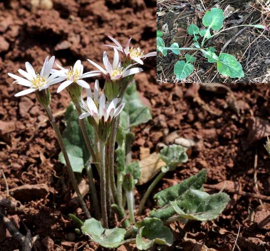多年生草本,有春、秋二型。春型植株较矮小,高8~19厘米;花茎直立,初有白色蛛丝毛密生,后渐脱落,上具线形苞片数枚;基部叶丛生,呈莲座状,椭圆状广卵形,长2~5.5厘米,宽1.5~4.5厘米,先端圆钝,基部心脏形。秋型植株高大,高30~60厘米,基部叶倒技针状长椭圆形,或椭圆状广卵形,长5~16厘米,宽3~5.5厘米,先端圆钝,基部逐渐狭窄成柄,边缘提琴状羽状分裂,顶端裂片卵形,边缘具不规则的圆齿,齿端凸头,上面绿色,下面密具白色蛛丝毛。头状花序单生,直径约2厘米;总苞简状钟形,长8~10毫米,宽5~10毫米;苞片约3层,外层苞片较短,线形,内层苞片线状披针形;舌状花紫红色,长10~12毫米;管状花长约7毫米。瘦果长4.5~6毫米,两端收缩;冠毛长4.5~5毫米。