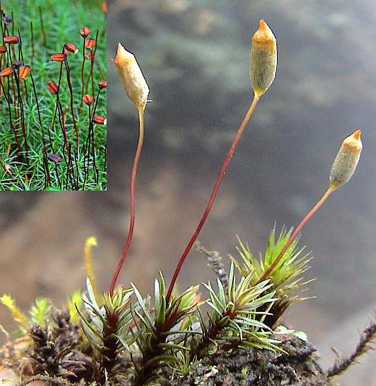 草本,高10~30厘米,丛生。茎直立,单一,常扭曲,下部密生假根,上部深绿色,老时呈棕红色或黑棕色。叶丛生于上部,向下叶渐小而渐疏,上部叶较大,具长卵形明显鞘部,叶片骤狭,长披针形,尖端卷曲,边缘具密锐齿,中肋强,突出成刺状;背面前部中央具微齿,腹面具多数栉片。雌雄异株;雄株稍短,顶端生雄器,状如花苞,常于雄器中央继续茁生斩枝;雌株较高大,顶生孢蒴;蒴柄强劲,长达10厘米,棕红色;孢蒴初直立,成熟时平列或垂倾,棕红色,四棱短方形;蒴帽覆盖全蒴,具棕黄色毛;蒴盖扁平,具短喙;托部盘状;蒴齿单层。孢于小,圆形,黄色,平滑。