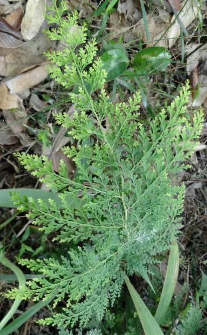 多年生草本,高可达65厘米。根茎坚硬而短,横走,密被赤褐色钻状鳞片。叶近生,叶柄长达25厘米,禾秆色,光亮,直立;叶近革质,无毛;3~4回羽状分裂,披针形,长20~40厘米,宽5~12厘米;下部羽片卵状技针形,斜展,长5~10厘米,宽2~5厘米;小羽片矩圆形或披针形;末回裂片楔形,先端截形,有牙齿,基部楔形,下延,叶脉下面明显,2叉状分枝。孢子囊群顶生,每裂片上1~2枚,囊群盖灰棕色,半杯形,宽与叶缘等长,向外开裂。