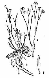 ¶àÄêÉú²Ý±¾£¬¸ß20¡«45ÀåÃ×£¬Óа×É«ÈéÖ¡£¸ùÉõ³¤£¬Ò²ÓÐÈéÖ¡£¾¥Ö±Á¢´ÔÉú£¬Êý´Î2Æç·ÖÖ¦£¬ÓÐÃ÷ÏÔÀâÏß¡£»ùÉúÒ¶µ¹ÅûÕëÐΣ¬³¤3¡«4.5ÀåÃ×£¬¿í0.6¡«1Ï»Ã×£¬Ïȶ˶ÛÔ²£¬¾ß¶Ì¼â£¬±ßÔµÊèÉúС³Ý£¬»ù²¿Ð¨ÐΣ¬½¥ÏÁ³É±ú£¬Ò×ÓÚÍÑÂ䣻¾¥ÉúÒ¶»¥Éú£¬ÏßÐΣ¬³¤1.5¡«6ÀåÃ×£¬¿í1.5¡«4ºÁÃ×£»Ïȶ˽¥¼â£¬Ò¶ÔµÊèÉúС³Ý£¬»ù²¿Ð¨ÐΣ¬±§¾¥¡£Í·×´»¨ÐòÅÅΪ2Æç¾Ûɡ״ɡ·¿»¨Ðò£»×ܰúÖÓ×´£¬°úƬ2ÁУ¬ÏßÐΣ¬Íâ¶ÌÄÚ³¤£»È«²¿ÎªÉà×´»¨£¬»¨¹Ú»ÆÉ«¡£ÊݹûϸÖùÐΣ¬³¤Ô¼4ºÁÃס£Éîרɫ£¬ÓÐϸÀâÏߣ¬¾ß°×É«¹Úë¡£