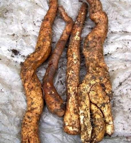 除上述正品山药外,在少数地区尚有以日本薯蓣(长江以南各省多有野生,其块茎习称野山药,土山药,原植物参见"风车儿"条)、三角叶薯蓣(分布云南、四川、西藏)等多种薯蓣属植物的块茎也作山药使用。