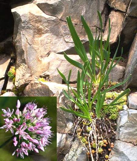 多年生草本,高30厘米左右。鳞茎圆柱形,具纤维状鳞毛。叶根生,狭线形,长5~20厘米,宽约0.3厘米,全缘。花茎从叶丛中抽出,伞形花序,顶生,花黑紫色。蒴果。