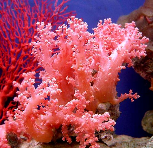 水生群栖腔肠动物,群体呈树枝状。分枝扩展如扇,分歧 甚细,其表面生有多数水媳体,称为珊瑚虫;虫体呈半球状, 上有羽状的触手8条,触手中央有口,虫体能分泌石灰质而形成骨胳,即通常所称的“珊瑚”。骨胳的表面红色、莹润,中轴白色。质坚硬,很美观。着生于海底的岩礁上。各水螅体 常以触手捕食微生物或生物之残 片。营无性及有性生殖,而以营有 性生殖者为多。分布台湾及南部沿海。