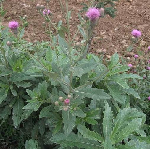 此外,同属植物刻叶刺儿菜的全草在东北及河北亦同等使用。性状与小蓟相似,但茎略粗,直径3~5毫米,叶边缘有明显块刻。头状花序的总苞棕黄色,苞片6~8列,三角状披针形至线状披针形。气弱,味淡。