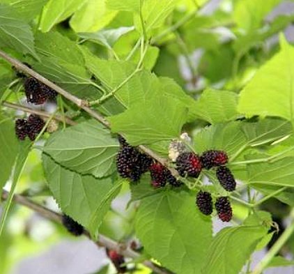 落叶灌木或小乔 木,高达15米。枝开 展,无毛;树皮褐灰 色,纵裂。单叶互生,卵圆形,长6〜15厘 米,宽4〜10厘米,先端急尖或渐尖,基部 截形或近心形,边缘 有祖锯齿,有时3〜5 裂,两面均有短毛;托 叶早落。穗状花序生 于新枝的叶腋,单性,雌雄异株;雄花被片 和雄蕊均为4枚,不 育雌蕊陀螺形;雌花 柱头2裂与花柱等 长,宿存。聚花果成熟时呈暗紫色。