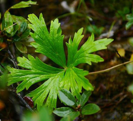 ②美丽乌头:草本。块根小,倒圆锥形,长约7毫米。茎的地上部分高6.5~30厘米,无毛。基生叶2~3,具长柄;叶片轮廓圆五角形,长1~2厘米,宽2~3.5厘米,3全裂,裂片细裂,小裂片披针形或条形,无毛;茎生叶1~2。总状花序具1~4花;花梗长2~6厘米,有反曲的微柔毛,上部生伸展的柔毛;小苞片条形或无;萼片5,蓝色,上萼片盔状船形,自基部至喙长1.7~2厘米,侧萼片长1.3~1.6厘米;花瓣2,无毛,距长约1.5毫米;雄蕊多数;心皮5,子房有短柔毛。