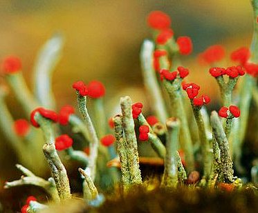 地衣类植物。平铺于岩石上,鳞片状,灰绿色。孢子器柄高1厘米左右,灰白色,先端杯状,边缘呈锯齿形,内面粉粒状,粗糙。孢子褐色,着生于杯状边缘上。