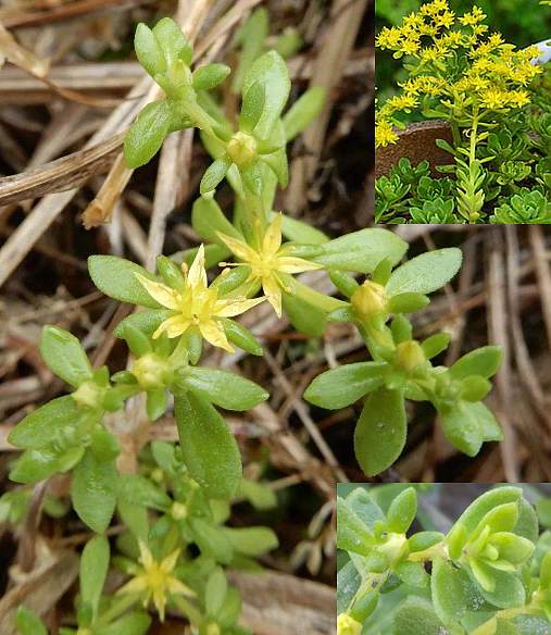 多年生肉质草本,不实枝或有或无。茎纤细,直立或倾斜,节上生根。单叶互生,匙状长卵形或倒卵形,长1~2厘米,先端尖或钝,上部常有乳头状突起;叶腋有小球形鳞芽,径约3毫米。顶生疏松的聚伞花序;花无梗;萼片5,阔倒披针形,先端有乳头状突起,长短不一;花瓣6,披针形至长卵形,黄色,先端有小尖状物突起;雄蕊10;心皮5,成熟的心皮长4~6毫米,基部相连.甚?果;种子长圆形,有乳头状突起,无翅。花期4~5月。