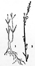 一年生草本,簇生或单生,高20~50厘米。茎直立,一般不分杖或少分枝。叶疏少,生于下部的对生或近互生,生于上部的互生,叶片线形,长1~2.5厘米,宽0.2~0.3厘米。稀疏的穗状花序顶生,梢端花渐密集;小花紫蓝色或白色。蒴果,瓶形,萼宿存。种子多数。