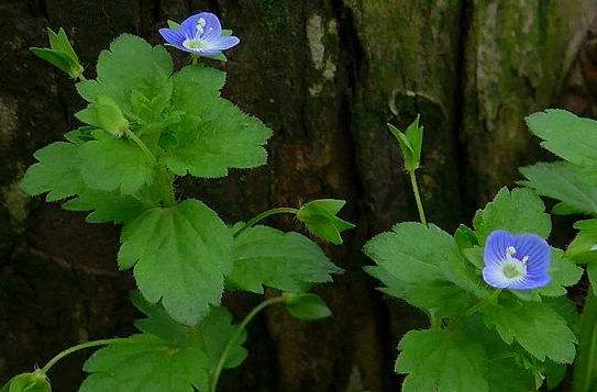 一年生草本,全株被毛。 茎多条从根处开展,上升, 粗短或细长,有铺散而重复的分枝。叶对生,卵形, 先端钝,基部圆形、近心形 或戟形,边缘有圆锯齿;叶柄很短。花小,顶生或腋 生,排成短总状花序;花冠 辐状,紫红色,花冠管很短,花瓣4〜5。蒴果小, 宽倒心形,较宿萼短, 生于路旁、沟边。