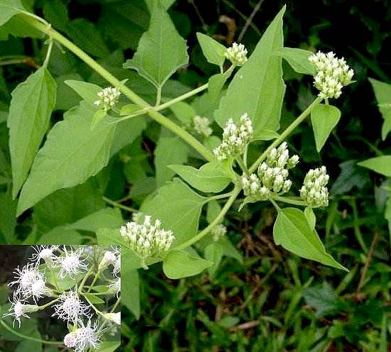 多年生草本,高1〜3米。茎具细纵纹,被黄色毛茸,枝叶揉碎有香味。叶对生,具柄,卵形至卵状三角形,长3〜10厘米,先端渐尖,基部圆或阔楔形,边缘有疏齿,两面绿色被毛,下面较密,离基3出脉。头状花序排成伞房状;花粉红色,全为管状花,5齿裂。瘦果5棱形,顶端有刺毛状冠毛。花期秋、冬。