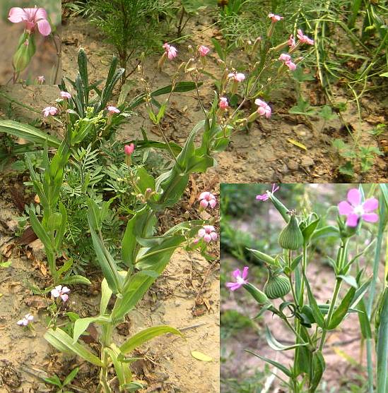 5.《救荒本草》: “王不留行,生太行山谷,今祥符、沙垌间 亦有之。苗高一尺余,其茎对节生叉。叶似石竹子叶而宽 短,播茎对生,脚叶似槐叶而狭长。开粉红花。结蒴如菘子 大,似罂粟壳样极小,有子如葶苈子大而黑色。”“麦蓝菜,生 田野中。茎叶?深莴苣色,叶似大蓝梢叶而小,颇尖,其叶 抱茎对生,每一叶间,撺生一叉,茎叉梢头,开小肉红花。结 蒴有子,结小桃红子。”