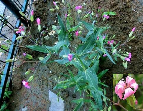 一年生或二年生草本。茎直立,高30~70厘米,圆柱形,节处略膨大,上部呈二叉状分枝。叶对生,无柄,卵状披针形或线状披针形,长4~9厘米,宽1.2~2.7厘米,先端渐尖,基部圆形或近心脏形,全缘。顶端聚伞花序疏生,花柄细长,下有鳞片彻、苞2枚;萼筒有5条绿色棱翘,先端5裂,裂片短小三角形,花后萼筒中下部膨大呈棱状球形;花瓣5,分离,淡红色,倒卵形,先端有不整齐的小齿牙,由萼筒口向外开展,下部渐狭呈爪状;雄蕊10,不等长;雌蕊1,子房椭圆形,1宦,花柱2,细长。蒴果广卵形,包在萼筒内。花期4~5月。果熟期6月。