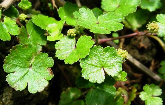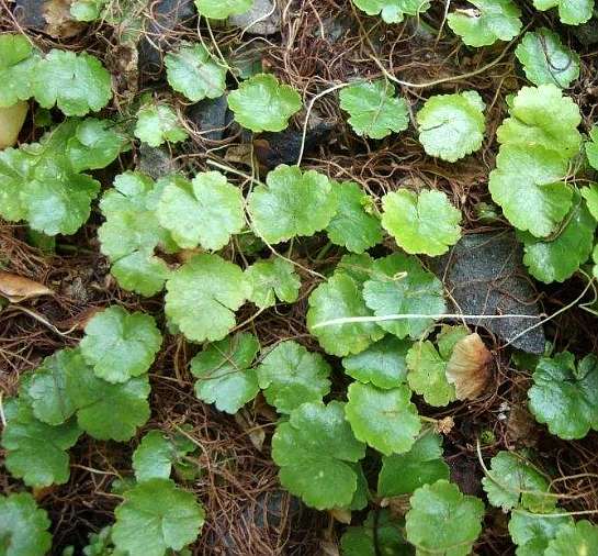 多年生草本。茎纤弱细长,匍匐,平铺地上成片,秃净或近秃净;茎节上生根。单叶互生,圆形或近肾形,直径0.5~1.6厘米,基部心形,5~7浅裂,裂片短,有2~3个钝齿,上面深绿色,光滑,下面绿色或有柔毛,或两面均自光滑以至微有柔毛;叶柄纤弱,长0.5~9厘米。伞形花序与叶对生,单生于节上;伞梗长0.5~3厘米;总苞片4~10枚,倒披针。形,长约2毫米;每伞形花序具花10~15朵,花无柄或有柄;萼齿缺乏;花瓣卵形,呈镊合状排列;绿白色。双悬果略呈心脏形,长1~1.25毫米,宽1.5~2毫米;分果侧面扁平,光滑或有斑点,背棱略锐。花期4~5月。生于路旁草地较湿润之处。洗净,阴干或鲜用。