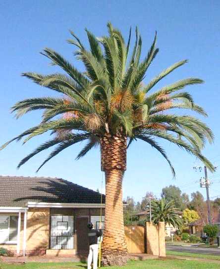 常绿大乔木,高可达17〜33米,基部常有根蘖丛生。叶 羽状,甚长,坚韧V向上为拱形,略现灰白色;羽片有隆起背 棱,先端尖锐而坚韧,下方羽片变为针剌。花雌雄异株,为 分枝肉德花序,伸出于叶丛间;萼杯状,有3齿,亦常具三 棱;花瓣3,雄花为长捕圆形,镊合状,雌花为围形,覆瓦状, 通常长不及萼长之2倍;雄蕊6;心皮3,分离。果实圆筒 状,长3〜6厘米,其形似枣;中有一核,有深长沟。分布卵洲及小亚细亚一带,今热带广事栽培;我国南部亦有。