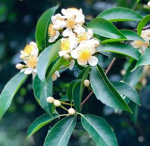 乔木,高8〜18米;无 毛,或幼枝略被毛。叶 革质,卵状椭圆形至矩 圆形,长10〜12厘米,宽2.5〜5厘米;叶柄长 1.4〜1.8厘米。花白色,单独腋生或顶生成短总状花序;花梗长1.2〜1 厘米,通常直立;萼片5,边缘有细毛;花瓣5,倒 卵形;雄蕊极多数;子房基部密生细毛。蒴果近球形,径约1.5厘米,5裂,果皮木 质。花期5月。 生于山地杂木林中。