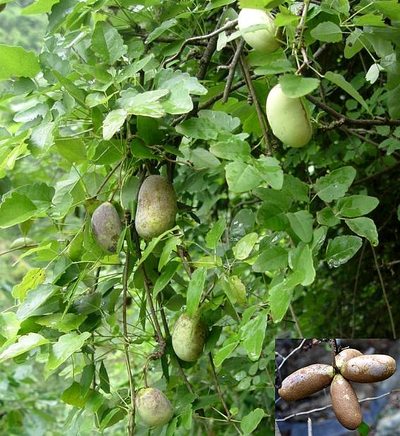 2、《唐本草》: “通草,大者径三寸,每节有二、三枝,枝头 有五叶,其子长三、四寸,核黑瓤白,食之甘美。南人谓燕?,或名乌箱,今言蓠藤,富筏声相近尔。”