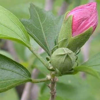 【药材】干燥蒴果,呈卵圆形或矩圆形,长约2厘米,直 径约1.6厘米,先端短尖,有的已开裂为5瓣,外面带黄绿色而有绒毛,基部有宿 存花萼5裂,外面有星状毛,萼下有狭线 形的苞片6〜7枚,排成一轮,或部分脱落;有残余的花柄。蒴果5室。种子呈三角状卵形或略带肾形而扁,灰褐色,无光泽,下端具长条状的种脐,四周密布多数乳白色至灰黄色的绒毛,长约3毫米。 以干燥、黄色、蒂绿、果内种子不散落者木槿子药材为佳。产江?、广西等地。
