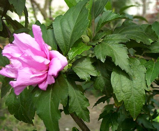 落叶灌木或小乔木,高3〜6米。树皮灰褐色,无毛。嫩 枝上有绒毛。叶互生;菱状卵形或卵形,长4〜7厘米,宽 2.5〜5厘米,具有深 浅不同的3裂或不 裂,叶基楔形,边缘具 圆钝或尖锐的齿,主 脉3条明显,两面均 疏生星状毛,后变光 滑;叶柄长1〜2厘米,光滑或被有线毛或星 状毛。花单生于叶腋;小苞片6〜7,线形,长约为花萼之半;萼 片5裂,卵状披针形,有星状毛和细短软 毛;花瓣5,淡红色、白色或紫色;雄蕊基数,丝联合成筒状;子房5室,花柱5裂,柱头头状。蒴果长椭圆形,先端具尖 嘴,全体被绒毛。种子黑褐色,背部有长棕色毛。花期6〜7 月。