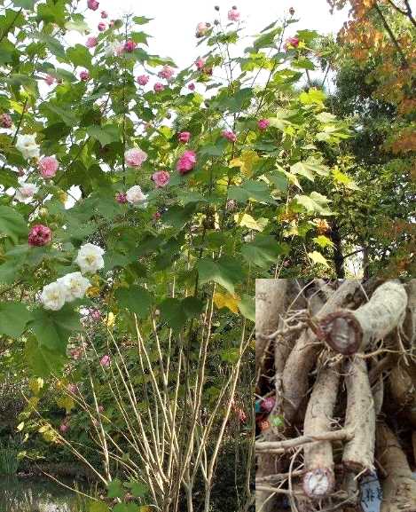 【原植物】锦蔡科植物木芙蓉HiWscMs wmfabiWs L.,详“木芙蓉花”条。