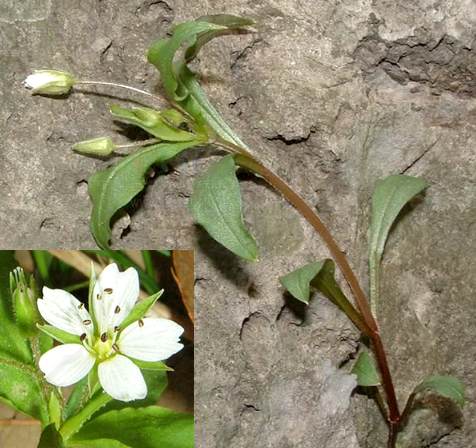 多年生草本,高15~20厘米。块根长纺锤形。茎下部紫色,近四方形,上部近圆形,绿色,有2列细毛,节略膨大。叶对生,略带内质,下部叶匙形或倒披针形。先端尖,基部渐狭,上部叶卵状披针形至长卵形,茎端的叶常4枚相集较大,成十字形排列,边缘略呈波状。花腋生,二型:闭锁花生茎下部叶腋,小形,花梗细,被柔毛;萼片4;无花瓣。普通花1~3朵顶生,白色;花梗长1~4)厘米,紫色;萼片5,披针形,背面有毛;花瓣5,倒卵形,顶端2齿裂;雄蕊10,花药紫色;雌蕊1,花柱3,柱头头状。蒴果近球形,熟时5瓣裂。种子扁圆形,有疣状突起。花期4~5月。果期5~6月。