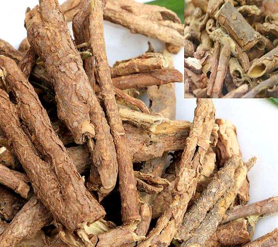 【药材】干燥根皮呈卷筒状,单卷或双卷,长7~10厘米,筒径约6毫米,厚约1~2毫米。夕表面灰褐色,有横向皮孔及纵皱,内表面淡黄色或淡黄棕色。质脆,易折断,断面不整齐;淡灰黄色。气微香,味微苦涩。以粗长、皮厚、气香、无木心者为佳。