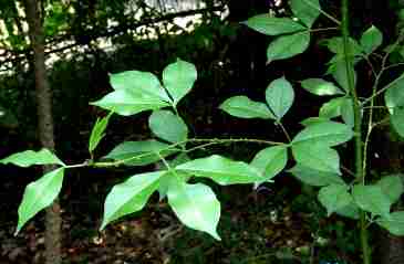 灌木或小乔木,高 2〜6米。枝粗糙,具稀 疏皮剌。单数羽状复时 互生;小叶1〜3,稀3〜5片,苹质,宽卵形至长 圆形,长4〜12厘米,宽 2〜5厘米,先端短渐尖,有时微凹,基部狭楔形,边缘有锯齿或针刺。聚 伞状圆锥花序顶生或腋 生,长2〜6厘米;花小 形,单性,同株;花被 7〜8,有时其中2片合 生,先端分叉,大小不 等;雄花雄蕊4〜6,退 化心皮圆球形;雌花具 退化雄蕊4〜5,心皮2, 分离。蒴果紫红色。种 子球形,直径4〜5毫米,黑色,有光泽。生于丛林阴湿处,有时见于空旷地分布陕西、湖北、贵 州、四川等地。