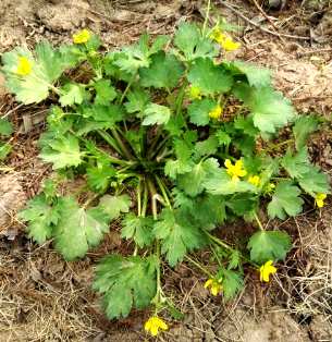 多年生草本,全株被白色细长毛,尤以茎及叶柄上为多。须根多数,肉质,细柱状。茎直立,高50~90厘米。基生叶具叶柄,柄长7~15厘米;叶片掌状或近五角形,长3~6厘米,宽4~7厘米,常作3深裂,裂片椭圆形至倒卵形,中央裂片又3裂,两侧裂片又作大小不等的2裂,先端齿裂,具尖头;茎生叶具短柄或无柄,3深裂,裂片倒卵形至菱状卵形,至茎上部裂片渐狭呈线状披针形,两面均有紧贴的灰白色细长柔毛。花与叶相对侧生,单一或数朵生于茎顶,具长柄;花直径2厘米;萼片5,长圆形或长卵形,先端钝圆,淡黄色,外密被白色细长毛;花瓣5,黄色,阔倒卵形或微凹,基部钝或阔楔形,具蜜槽;雄蕊多数,花药长圆形,纵裂,花丝扁平,与花药几等长;心皮多数,离生,柱头单一。聚合瘦果近球形或卵圆形,瘦果稍歪,卵圆形,表面淡褐色,两面稍隆起,密布细密小凹点,基部稍宽,边缘有狭边,顶端有短喙。花期4~8月。果期6~8月。