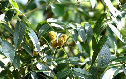 落叶灌木或小乔木,高5〜20米。幼枝常被棕色绒毛。单数羽状复叶互生,长15〜30厘米;小叶7〜23,卵状披针形 或长椭圆状披针形,长4〜12厘米,宽2〜4厘米,基部阔楔 形或微心形稍偏斜,先端渐尖,边缘有重锯齿,下面幼时有 密毛,老时仅脉腋有簇毛;无柄。花单性,雌雄同株,穗状花 序,伞房状排列;中央的一条常为两性花序,两性花序的下端为雌花序部分,上 端为雄花序部分,在 开花后脱落而仅留下 雌花序部分;两性花 序下方周围者为雄性 穗状花序;雄花的苞 片披?形,浅黄绿色,无小爸片及花被,雄 蕊8;雌花具1卵状 披针形爸片,无小荀 片,具2枚贴生于子 房的花被片,雌蕊1,无花柱,柱头2裂。果 序球果状长椭圆形;小坚果扁平,圆形,具 2狭翅。花期5〜6月。果期7〜8月。