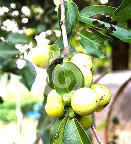 常绿乔木,高达7〜10米。树皮暗灰色。幼枝有细软毛。 叶薄革质,平滑无毛,长椭圆形,长约5〜11厘米,两面有 显明网状叶脉;叶柄长约1 厘米•花以4数合成。雄花 无柄,5〜6朵丛生于短梗 上;萼杯状,萼片短,先端钝, 有细毛;花冠无毛;雄蕊约 16,平滑无毛,2枚合生,有 时为3枚合生。雌花单生;萼 片长,先端尖,永存而逐渐生 长。果实球形,赤黄色,直径 约5厘米许,宿存萼为木质杯状。分布广东。