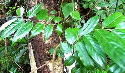 常绿攀援灌木,长2〜10米。枝掠褐色,有松色皮孔,幼枝及芽有棕色茸毛, 有时节上生根。叶互 生,革质,椭圆形或椭 圆状披针形,长5〜9 厘米,宽1.5〜3厘米, 基部圆形或楔形,先 端渐尖,脉网在下面 隆起,成蜂窝状;叶柄 长4〜7毫米,密生棕 色毛。花序托单一或 成对,单生于叶腋或 聚生于老枝上,球形, 直径4〜7毫米,具短 梗;雄花和瘘花同生 于一花序托中,雌花 生于另一花序托内; 雄花生于花序托口部,花被片3〜4,雄蕊2,瘘花有5花被片。花期4月。果期 7月。