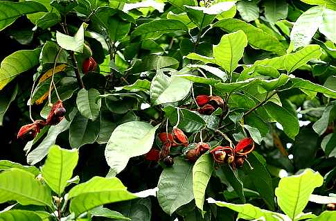 3.《思恩府志》: “罗晃子,俗名九层皮,形类蚕豆可茹,味如煨栗。外有黑光,连肉有皮九层,故名•产于山树(林)中。”09.96