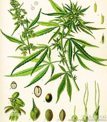 大麻的雌花枝和果穗亦入药,能镇痛、麻酸、致幻、有成瘾性。