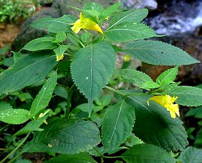 【备考】《植物名实图考):“水金凤生云南水泽畔。叶、 茎俱似凤仙花,叶色深绿。夏秋时叶梢生细枝,一枝数花, 亦似凤仙,而有紫、黄数种,尤耐久。