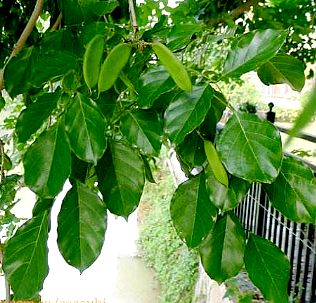 乔木,高8~15米,全部秃净或于小枝上稍被毛。单数羽状复叶,长20~25厘米;小叶5~7枚,对生,近革质,卵形、阔椭圆形至矩圆形,长5~10厘米,宽4~3厘米,先端渐尖或浑圆,基部钝残浑圆。总状花序生于上部叶腋内,长15~20厘米;花柄2~4个聚生,长5~8毫米,中部有小苞片2;花多数,白色或粉红色;萼钟形,长约3毫米;花冠长12~14毫米,旗瓣圆形,基部耳形,背面被丝毛,龙骨瓣内弯,钝;雄蕊10;子房近无柄,花柱内弯,秃净。荚果木质,秃净,矩圆形,长4~5厘米,宽1.5~2.5厘米,顶端有短喙;种子通常1颗,肾形。花期6月。