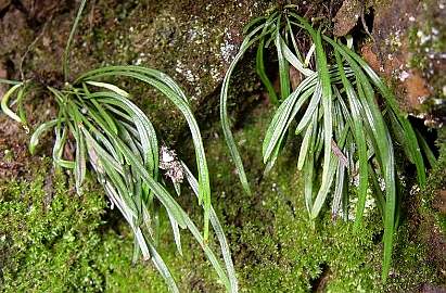 多年生附生或石生草本。根茎短而横走,密被?片;?片狭披针形,黑褐色;须根细密。叶丛生,无柄或几无柄;叶片线形,长30〜40厘米,宽3〜3毫米,先端渐尖,基部渐狭,全缘,革质,中脉在 叶上面凹下为狭沟,在 下面稍隆起,叶缘稍反卷。孢子囊群线形,深陷叶肉中,沿叶边缘以里的沟内着生,沟的内 沿隆起,子囊群内有隔丝存在。生于阴暗处岩石上或 附生大树上。分布华东、 华南、西南等地。